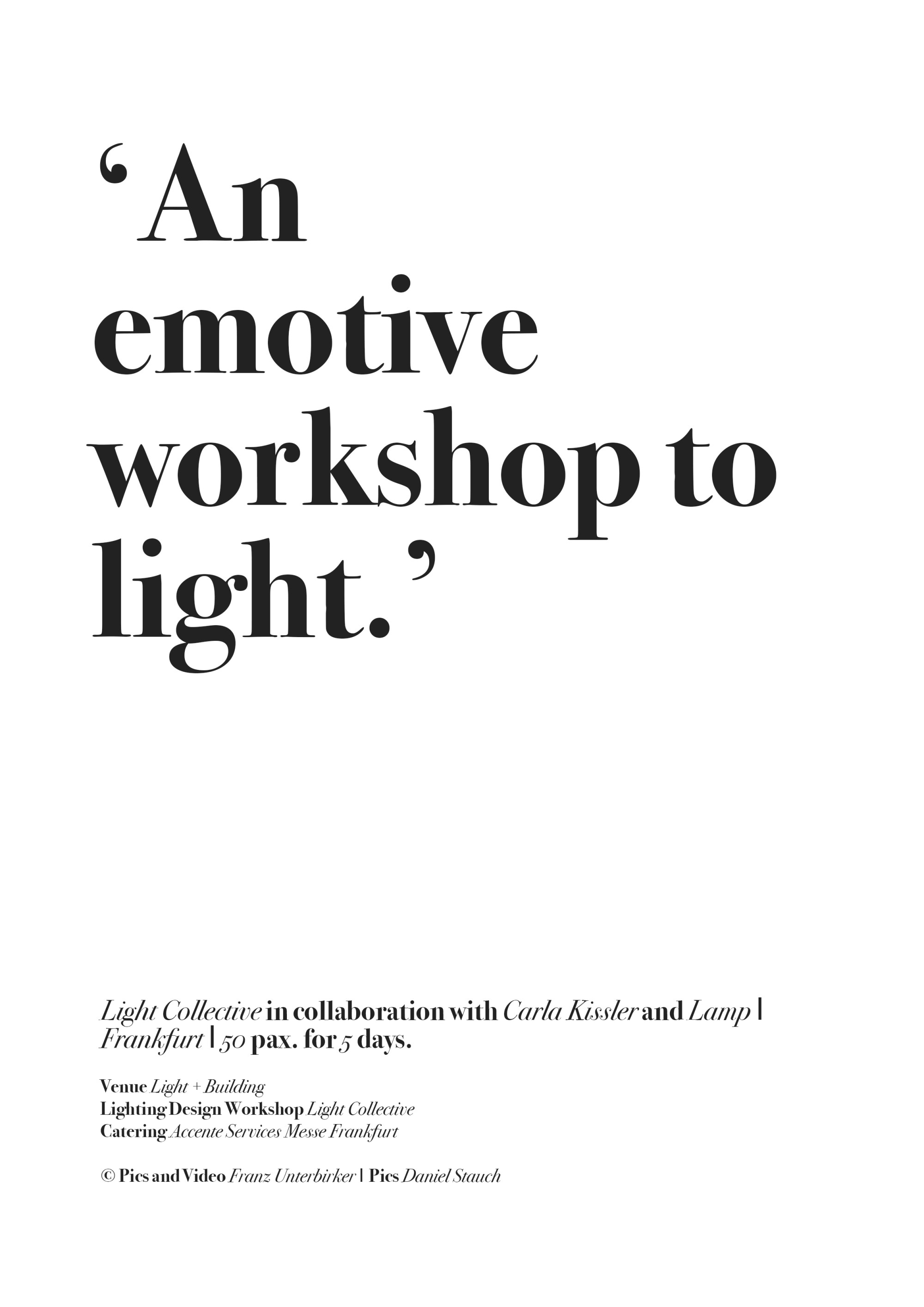 An emotive workshop to light carlakisslerevents February 7, 2018 0 Comments Like Loading... Frankfurt